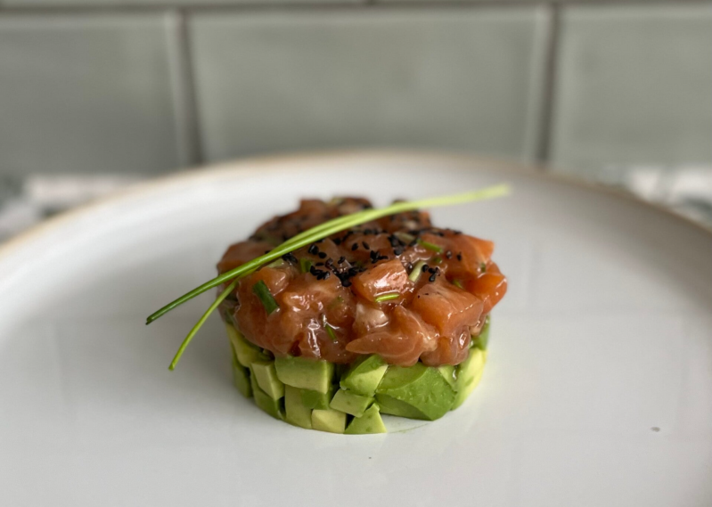 Zalmtartaar met avocado en sesam